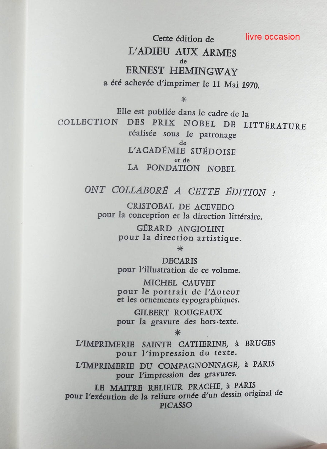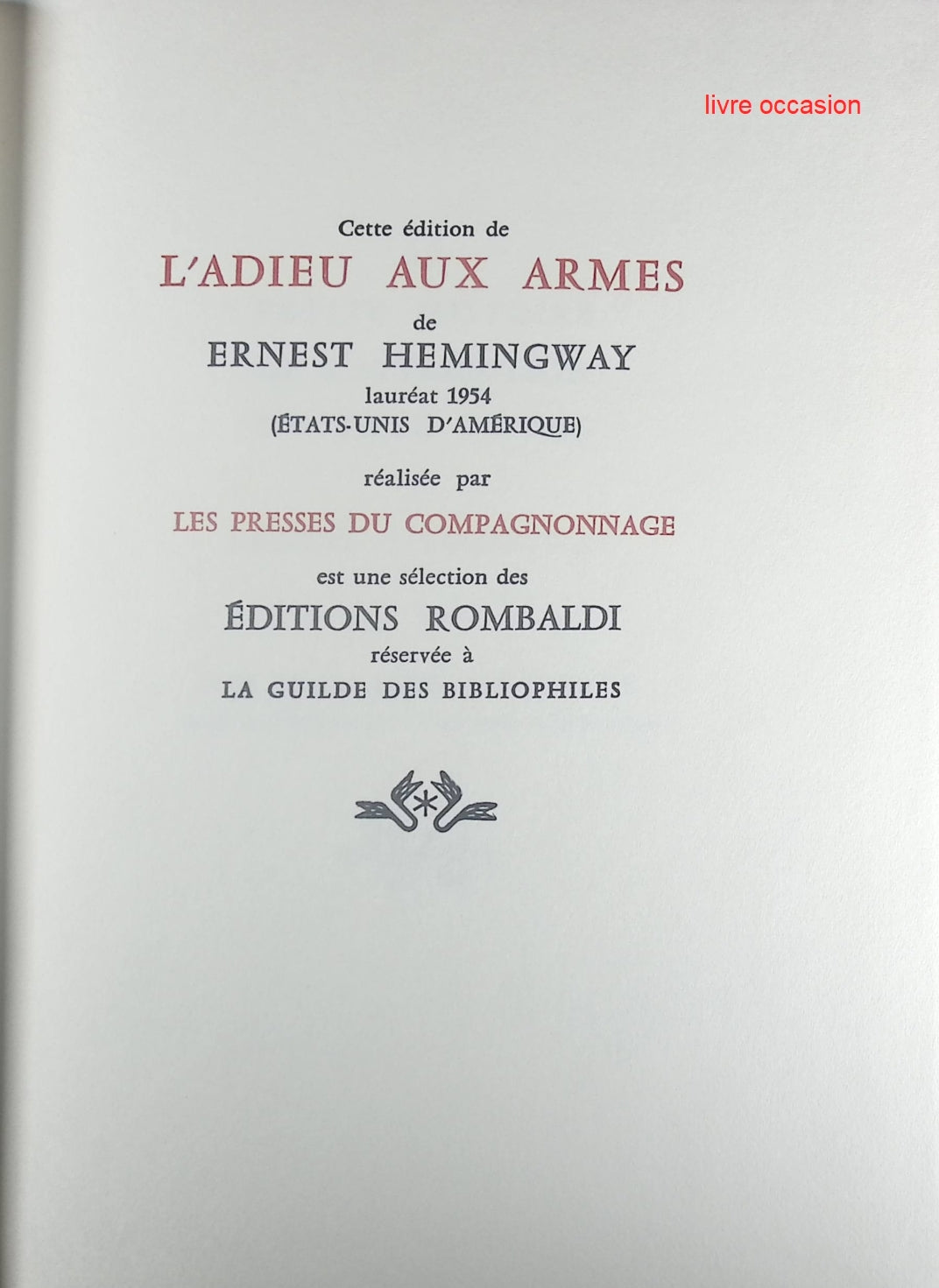 L'Adieu aux armes - Ernest Hemingway - Livre