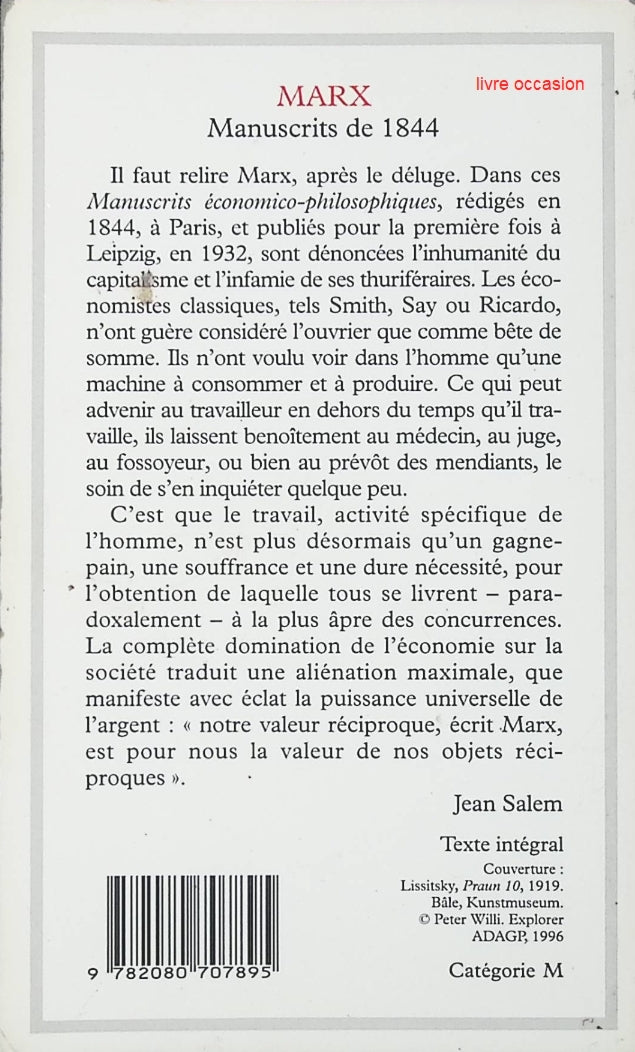 Manuscrits de 1844 - Karl Marx - livre