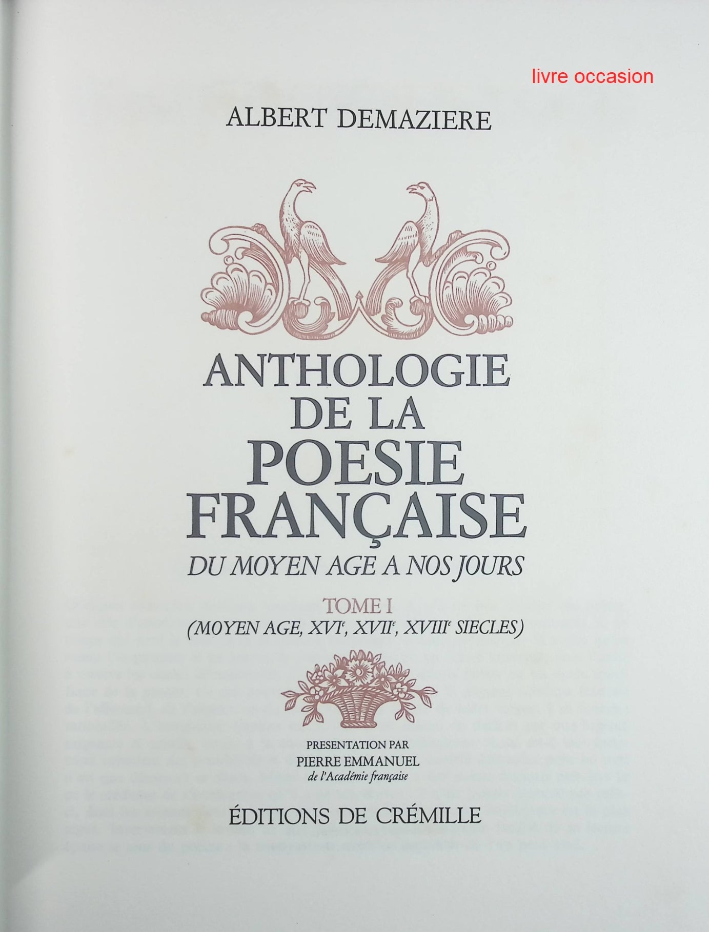 Anthologie de la poésie française du moyen âge à nos jours - Tome 1 - XVI, XVII, XVII, siècles - Albert Demaziere - livre