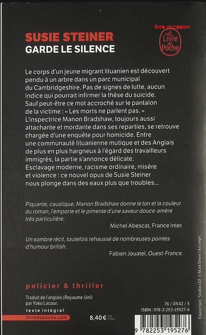Titre : Garde le silence - Susie Steiner - Livre Résumé : Un jeune migrant lituanien découvert pendu dans une... Read more