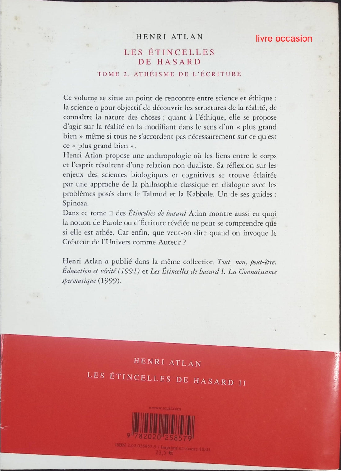 Les Etincelles de hasard - tome 2 - Athéisme de l'écriture - Henri Atlan - livre