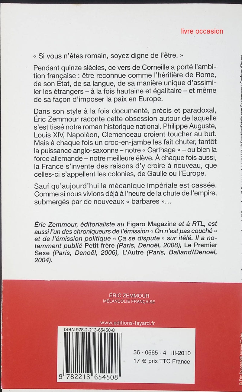 Titre : Mélancolie française - Eric Zemmour - Livre Résumé : Pendant quinze siècles, la France a nourri une ambition... Read more