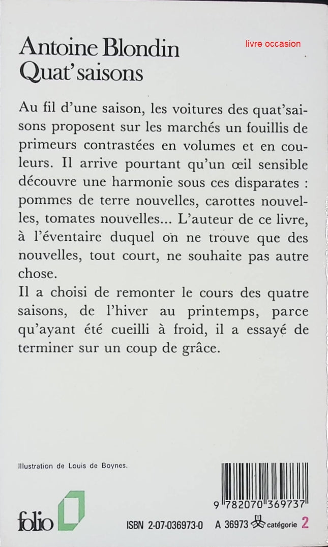 Titre : Quat'saisons - Antoine Blondin - Livre Résumé : Comme les étals saisonniers qui offrent leurs trésors contrastés, ce... Read more