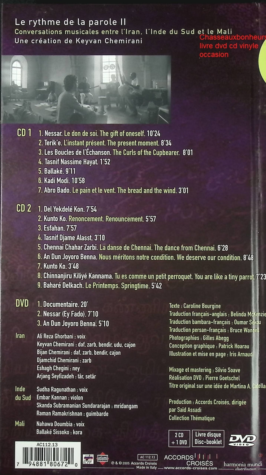 CD musique du monde Keyvan Chemirani Le Rythme de la Parole II Conversations Musicales The Rhythm of Speech II percussion et voix occasion - CD + DVD