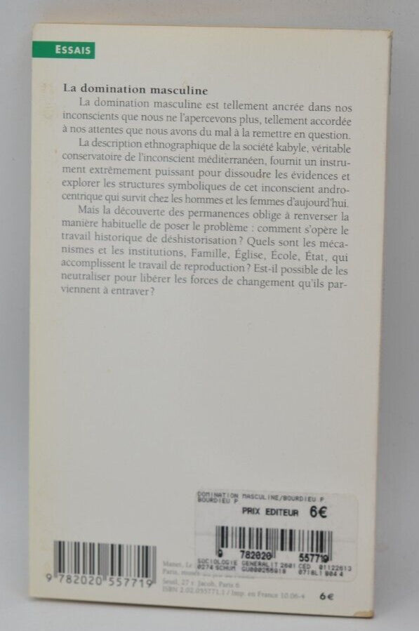 Titre : La domination masculine - Pierre Bourdieu - livre Résumé : La domination masculine est tellement ancrée dans nos inconscients... En savoir plus
