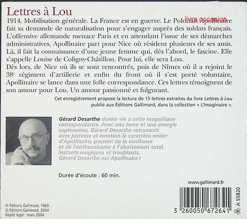 Titre : Lettres à Lou - Guillaume Apollinaire - Livre Audio Résumé : Plongez dans l'intimité poétique avec cette captivante... En savoir plus