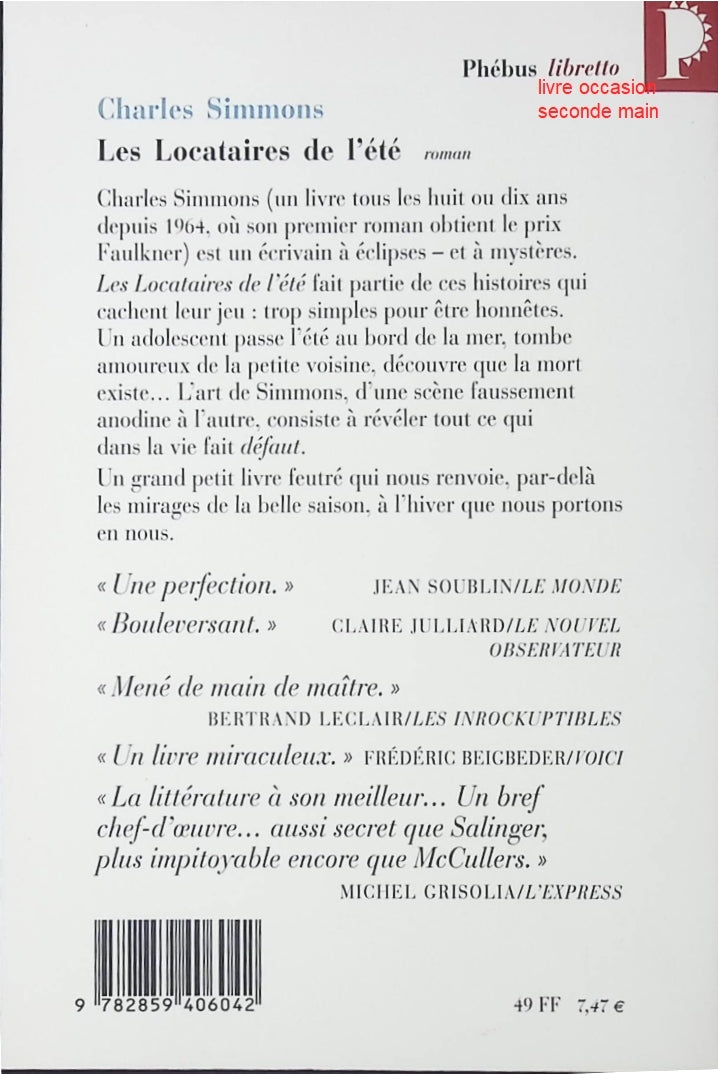 Roman contemporain Les Locataires de l’été – famille, secrets, drame estival – Charles Simmons - livre