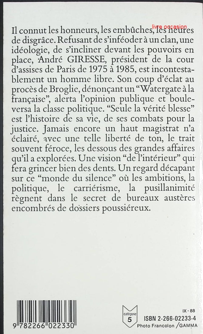 Titre : Seule la vérité blesse – André Giresse | Témoignage justice & affaires criminelles - livre Résumé• Dans Seule... En savoir plus
