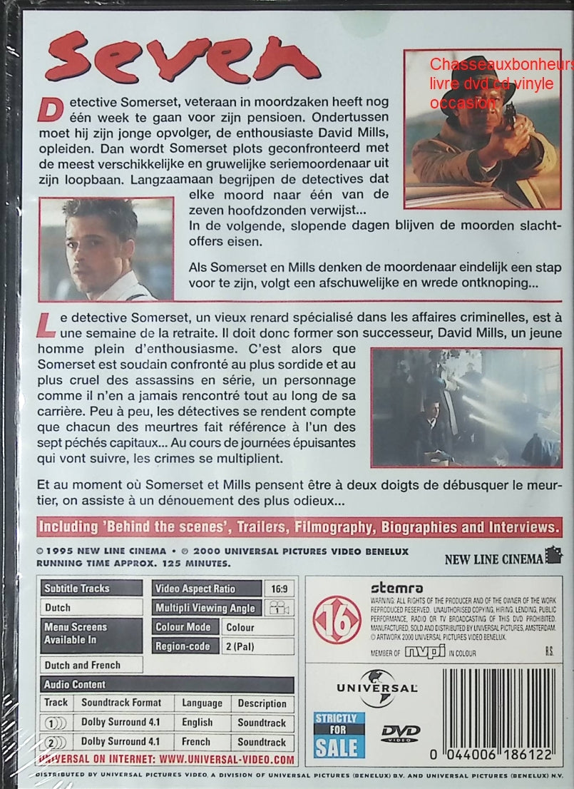 Titre : Seven DVD film thriller policier Morgan Freeman, Brad Pitt - DVD RésuméRevivez Seven, thriller policier réalisé en 1995,... En savoir plus