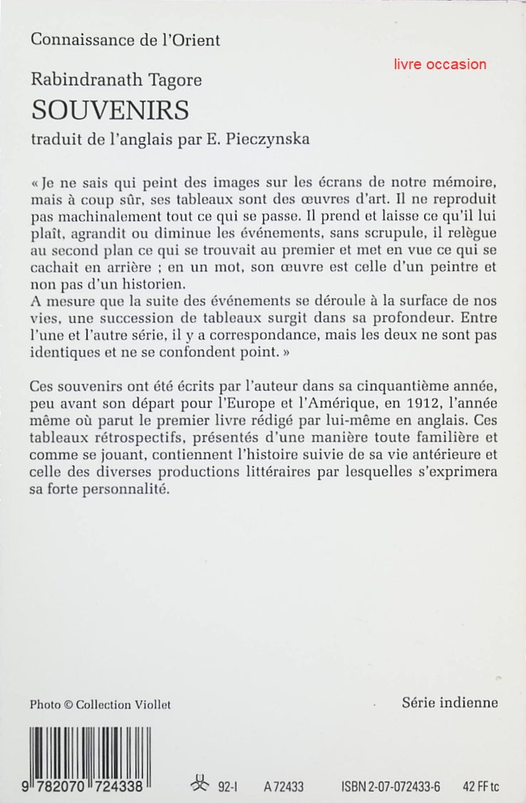 Titre : Souvenirs – mémoires et réflexions personnelles de Rabindranath Tagore | Voyage intérieur et culture indienne - livre Résumé•... En savoir plus