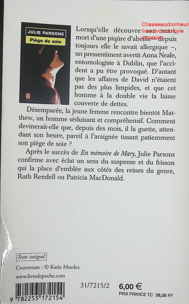 Titre : Thriller Piège de soie Julie Parsons suspense psychologique enquête meurtre roman noir irlandais livre occasion - Livre Résumé•... En savoir plus