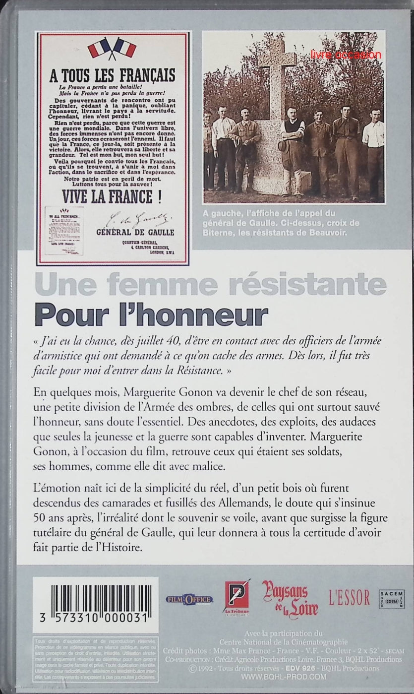 Une femme résistante - Pour l'honneur - Coffret de 2 VHS - Marguerite Gonon - cassette vidéo vhs K7